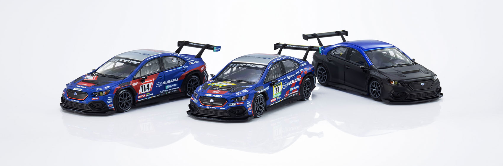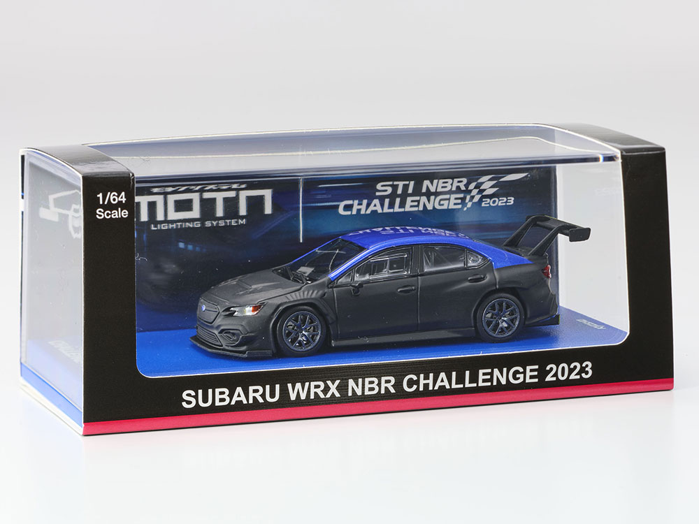 SUBARU WRX NBR CHALLENGE 2023/2024はMOTN対応でライト組込済。ファミリーマート版やテストカーをお求めいただいた方も、別途MOTN LEDベースシステムをご購入いただくことでヘッドライトとテールライトを点灯させることが可能になります。