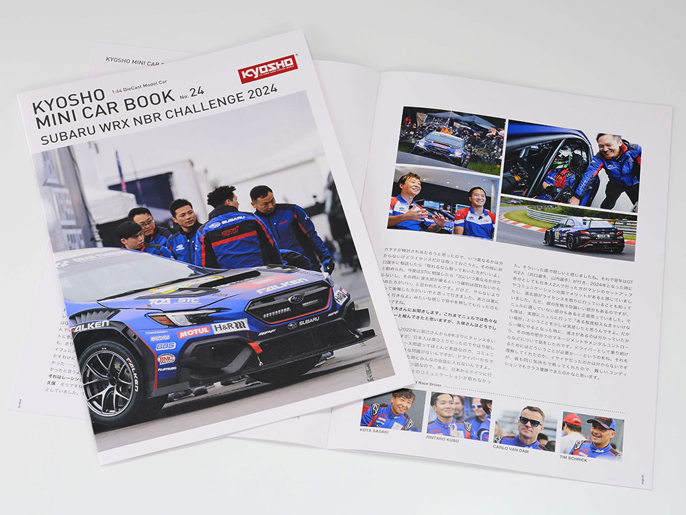 ニュルブルクリンク24時間レースの2023年と2024年に参戦したマシンのディテールを忠実に再現するためにSpecial Editionとして商品化。その精巧な出来栄えは、スバリスト、そしてミニカー好きの方にも満足していただけるはずです。小冊子では、NBRチャレンジに携わった面々の興味深い話が盛りだくさん。そして、レース界を勇退した辰己元総監督にもお話を伺っています。