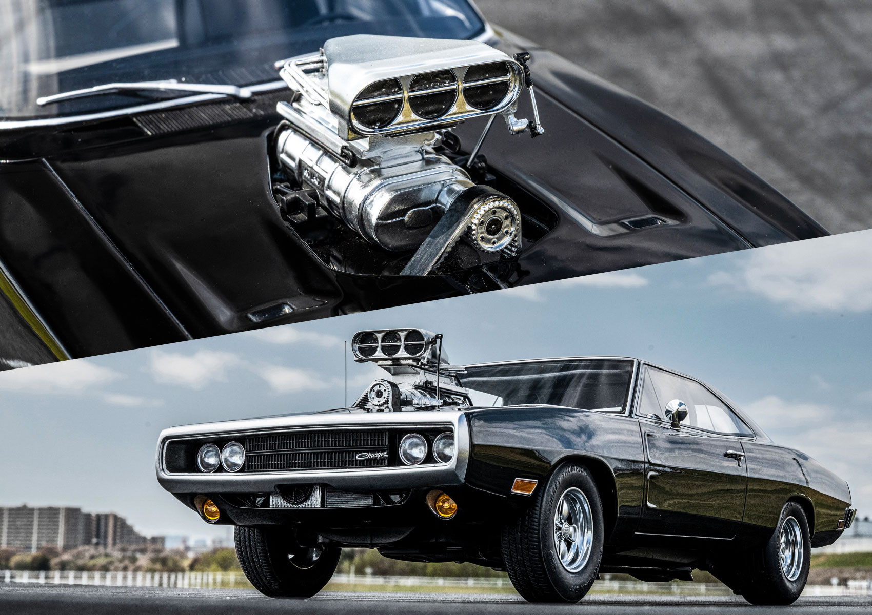 映画『ワイルド・スピード』の主人公ドミニクの愛車、「ダッジ・チャージャー R/Tを1/12スケールでレジンモデル化。ボンネットから大きく突き出したスーパーチャージャーをはじめ、ディテールにこだわって細部まで緻密に作り込まれている。